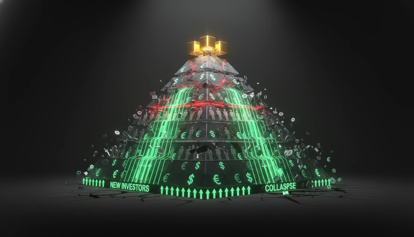 Em sua essência, um golpe da pirâmide financeira é um esquema insustentável que promete altos retornos com pouco ou nenhum risco, pagando investidores antigos com o dinheiro de novos participantes, sem geração de valor real por produtos ou serviços.